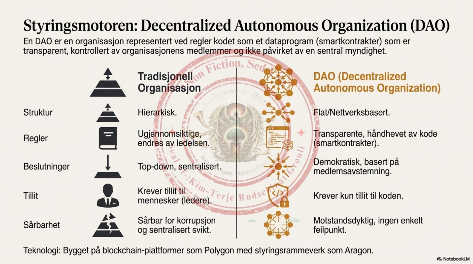 { "name": "House of Grønli — Grønli Court of Records", "type": "Private Unincorporated Administrative Office", "jurisdiction": "Land and Soil (Private)", "description": "Private administrative and archival office providing documentation, record-keeping, declarations, and evidence archiving through physical records and IPFS-based publication.", "identifier": { "registry": "AKFNS", "record_type": "Court of Records", "vendor_affiliation": "Global Family Group" }, "administrator": { "name": "KIM TERJE RUDSCHINAT GRØNLI", "role": "Administrator and Recorder" }, "services": [ "Private record-keeping", "Declarations and certifications", "Document archiving", "IPFS publication and QR binding", "Administrative documentation" ], "location": { "address": "Strandgata 5", "postal_code": "4790", "city": "Lillesand", "region": "Agder", "country": "Norway" }, "contact": { "email": "akfnso@proton.me", "phone": "+47 988 36 688", "website": "https://houseofgronli.webnode.page/services/" }, "legal_notice": "This entity is private and unincorporated. Documents issued or archived are private instruments and do not constitute public authority." }Hvis du heller vil ha YAML for lesbarhet eller arkivbruk, kan jeg konvertere direkte.
