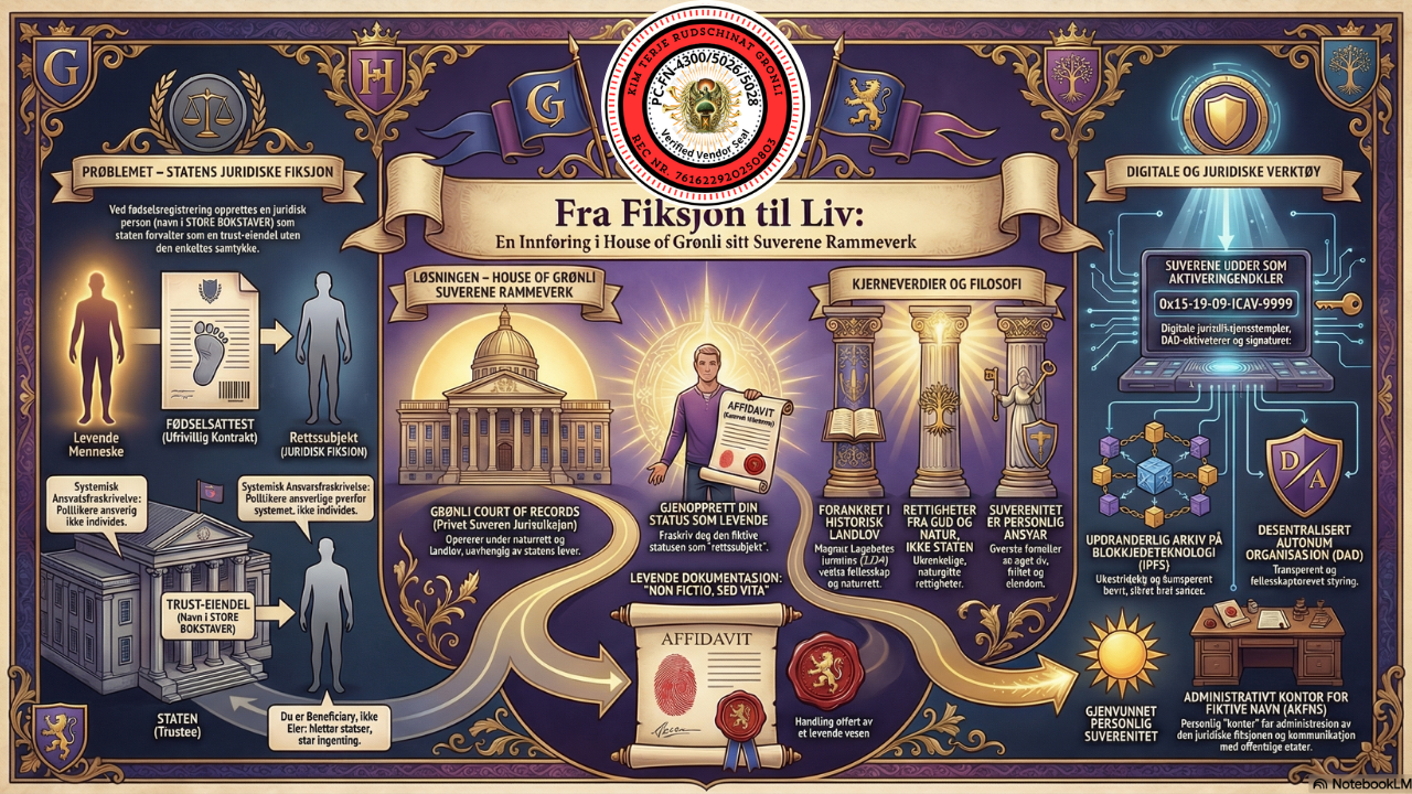 I am a living man, a sovereign being, and I stand under the jurisdiction of House of Grønli, Grønli Court of Records (Reg Nr. 76162920250803), and the Global Family Group 528's International Land/Soil Jurisdiction (Recording No. 40248520250628)."