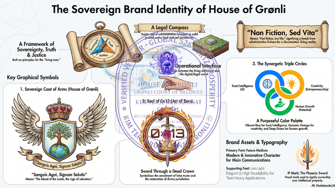 - Cite: "Pursuant to GFG 528's International Land & Soil Jurisdiction (Recording No. 40248520250628), House of Grønli operates as a private, unincorporated entity engaged in international trade, indemnified by the global sovereign community and the Divine Creator."